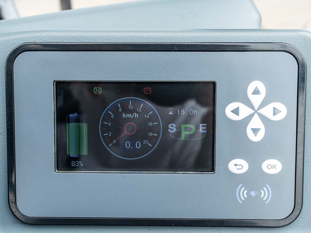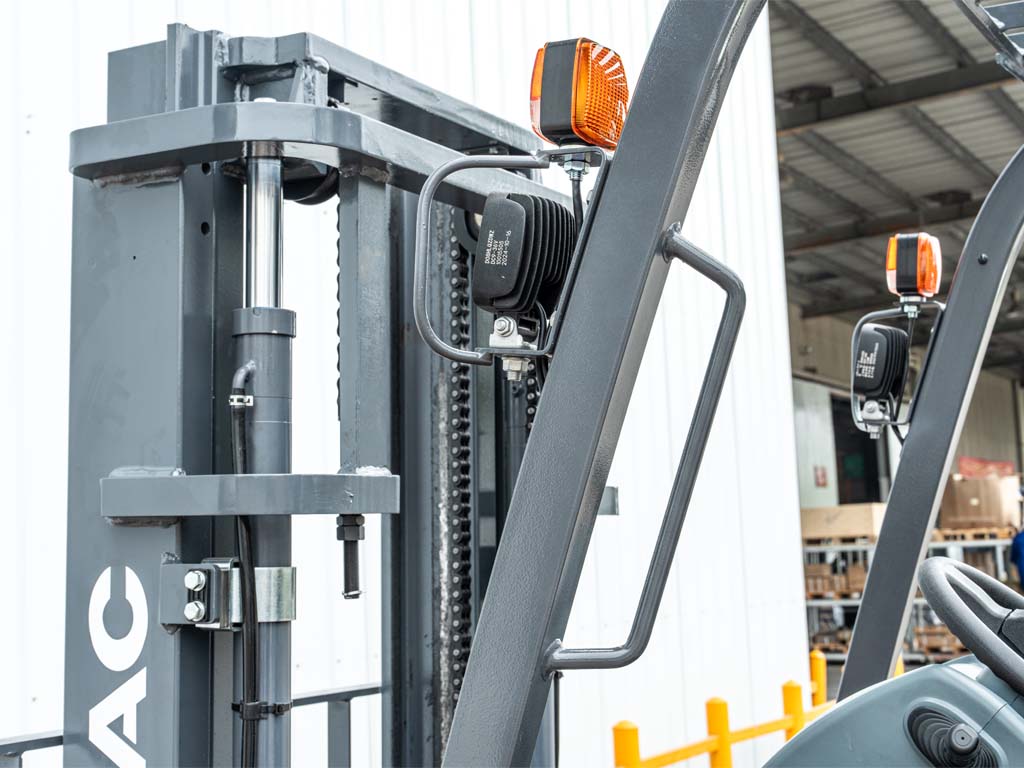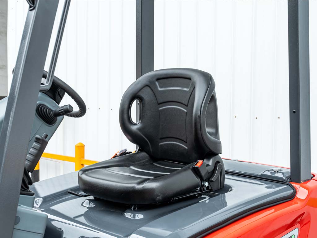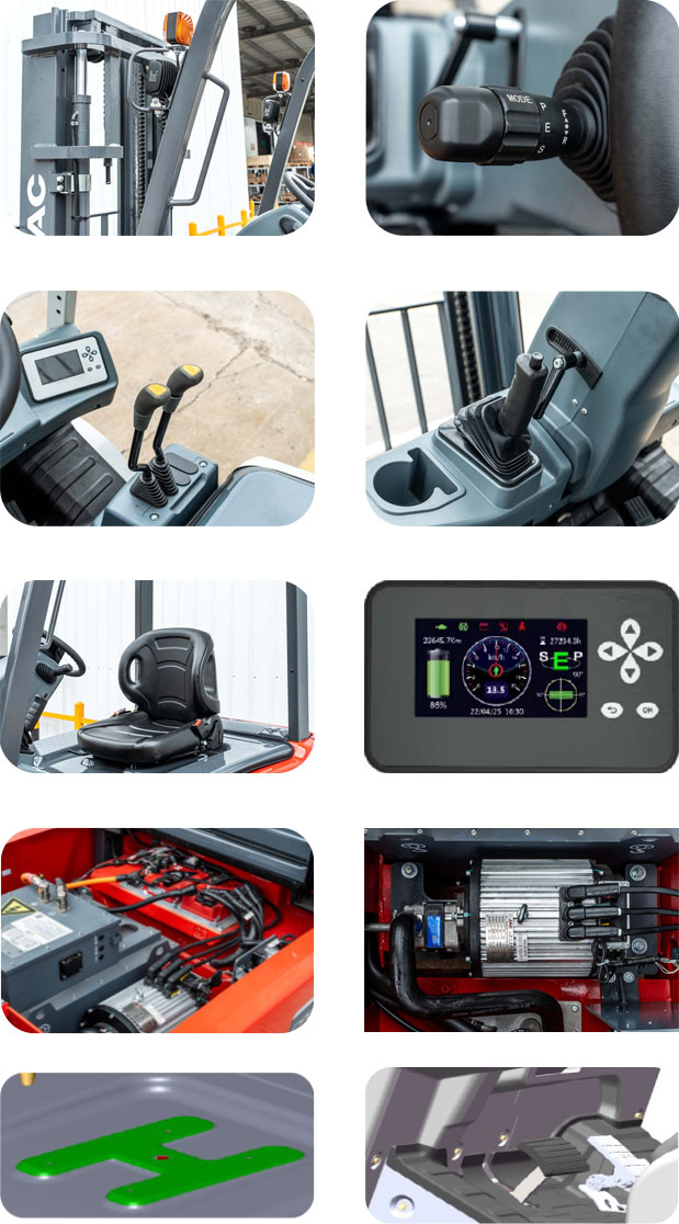 JAC приділяє особливу увагу комфортові оператора: сучасне сидіння OPS з амортизацією та підтримкою попереку забезпечує зручність протягом усього робочого дня. Покращена конструкція щогли забезпечує на 7% кращу видимість, а інтелектуальна панель керування та адаптивні режими швидкості роблять керування плавним і інтуїтивним.