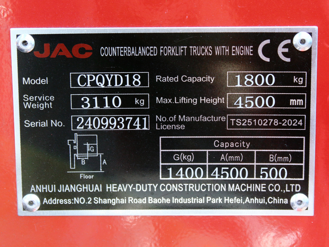 Газ-бензиновий навантажувач Jac CPQYD18